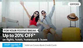 on Flights, Hotels, Holiday Packages, Buses & Cabs